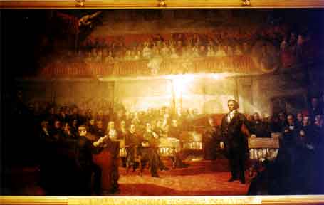 Patrick Henry was a self-taught lawyer who became a member of the Virginia House of Burgesses in 1765. The exact words of his speech to the House on March 23, 1776, are not known, since no one has ever found any notes on the speech, and we have to depend on people's memory of the speech long after it was given. Whether or not he actually said, "give me liberty or give me death," however, his speech that day set the crowd on fire. His words appealed to people's emotions, and his passionate oration helped strengthen support for the patriot cause.