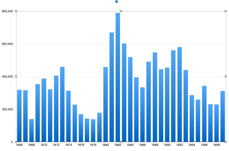Immigration to America, went up and down throughout the period of the Reconstruction — depending on the state of the American economy. Overall, however, the era of Reconstruction was a period of large scale immigration. During the 1840s and 1850s, most of the immigrants to the United States came from Germany and Ireland. By 1880s, large scale immigration began to come to the US from Eastern and Southern Europe. Large numbers of Jewish and Italian immigrants began arriving during this period. Immigrants during this period tended to settle in the major cities, providing a steady pool of labor for the expanding industries.